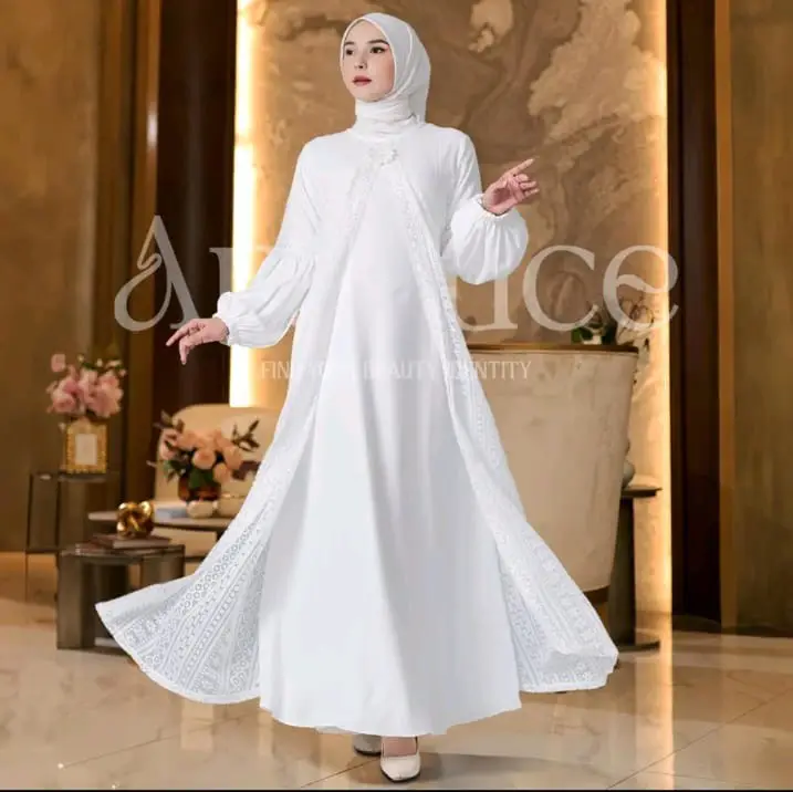 Di etalase-etalase digital marketplace, warna putih kini kembali “bersuara”. Salah satunya lewat sebuah nama: ARALLUCE 020 Gamis Brukat Putih.